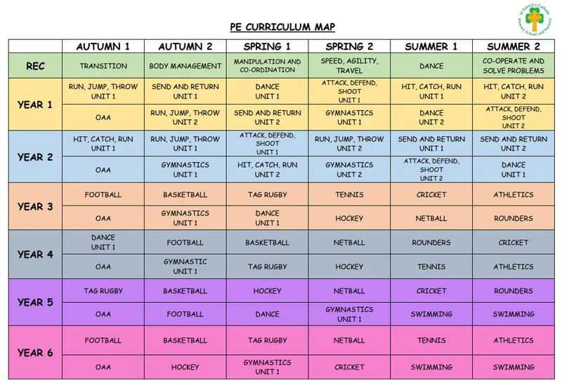 At St Patrick’s Catholic Primary School, we ensure that our PE curriculum is progressive and allows children to develop fundamental skills and apply them to a variety of sports and activities. All children are provided with the necessary skills and given opportunities to demonstrate improvement to achieve their personal best.