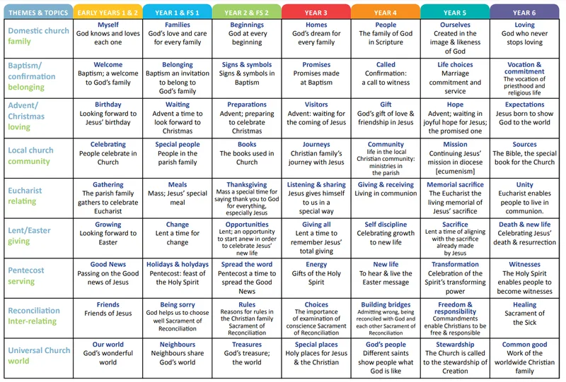 At St Patrick’s, we follow the programme of study in line with guidance from NORES. Currently, we use the ‘Come and See’ R.E. programme for Years 2, 3, 4 and 5, while Nursery, Reception, Year 1 and Year 6 have already transitioned on to the new scheme for R.E. called ‘To Know You More Clearly’. We ensure that a minimum of 10% of curriculum time is allocated for RE teaching across all key stages.